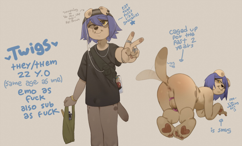 Tags: anthroanusassballsbeaniebig buttbulgecanidcaninecanischastity deviceclothingdialoguedomestic dogemofiltgenitalshairhatheadgearheadwearhi resimageboardmalemammalmodel sheetone eye closedpawpadspresentingpresenting hindquarterspurple hairringRule34smugsolotailtail motiontailwagthick thighstrans (lore)twigs (filt)winkyellow eyes