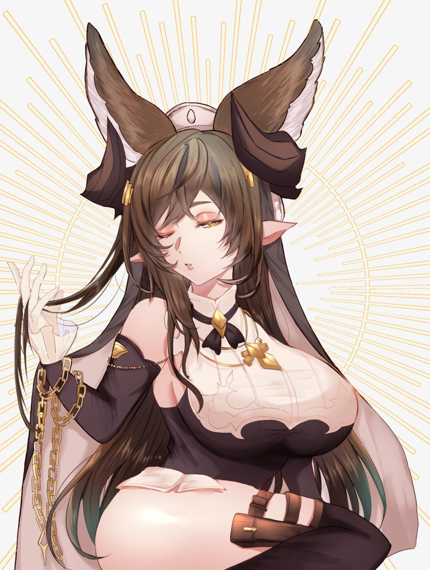 Tags: 1girlsbangsbrown hairchainsdetached sleevesextra earsfrillsgalleon (granblue fantasy)golden eyesgranblue fantasyhornsimageboardlarge breastslong hairmulticolored hairone eye closedpointy earsRule34solostreaked hairtaut clothesthick thighsthighsunusually open eyesvery long hair