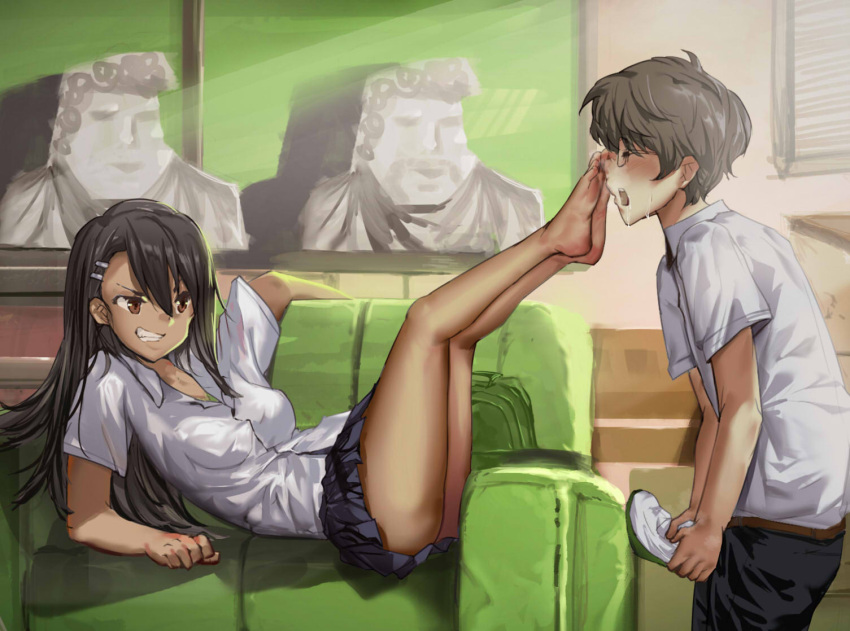 Tags: 1boy1girlsblack hairbreastsbrown eyesbrown hairclosed eyesclothedclothingfeetfemaleglasseshayase nagatorohi reshighresimageboardlaying downlong hairmedium breastsnagatoronaoto hachioji (senpai)please don't bully merencaichchrevealing clothesRule34short hairsimple backgroundskirtstandingtantan bodytan skintan-skinned femaletannedtanned femaleupskirt