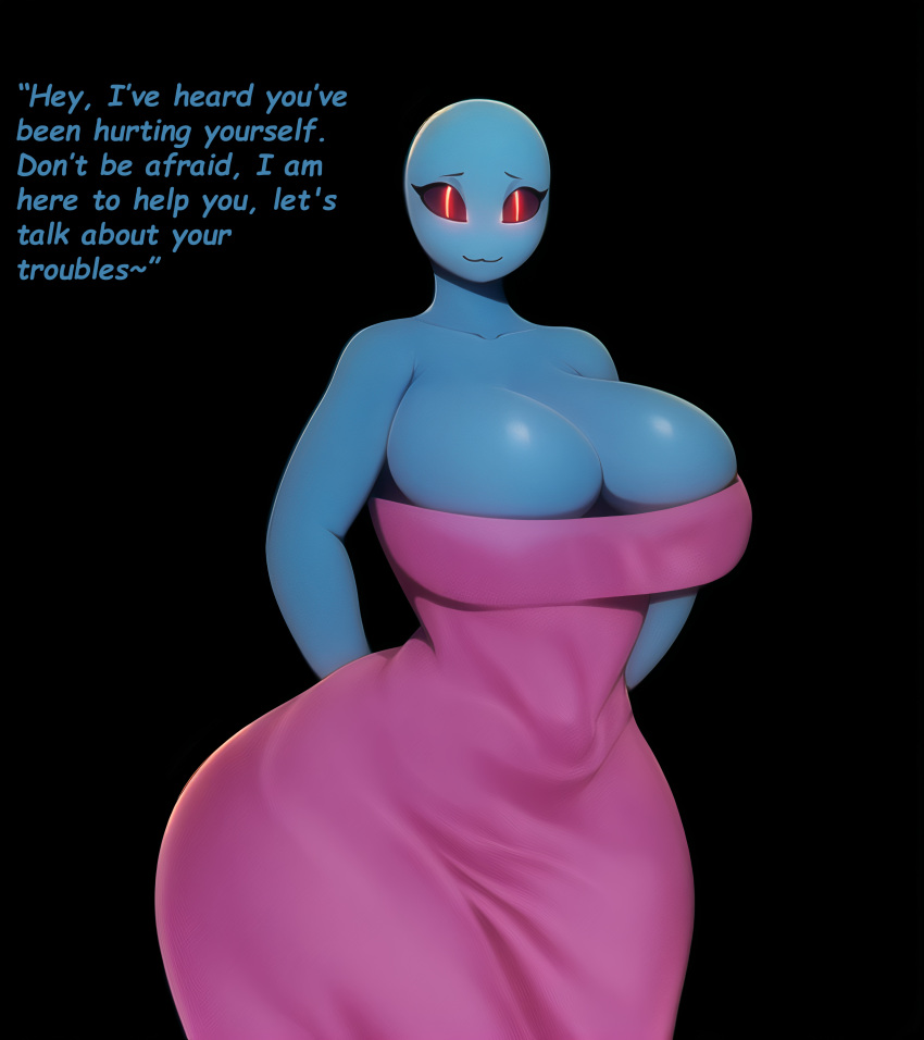 Tags: 1girlsarms behind backblack backgroundblue skincreaturecurvaceouscurvyfemaleghostghost girlhelpinghumanoidimageboardmagicmagical girlnightgownpink dressred eyesRule34shadow dollssmilesmilingspirittextthickthick assthick legsthick thighsuwuvoluptuousvoluptuous femalewhoramwide hips