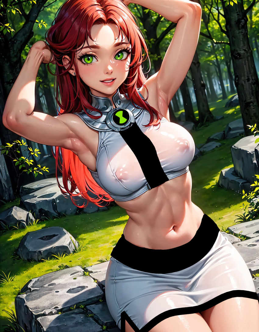 Tags: ai generatedalternate costumearmpitsarms upbellybelly buttonben 10ben tennysonbenfirebig breastsbreastseditimageboardmidriffminiskirtnipplesnipples visible through clothingrule 63Rule34see-through clothingsmilestarfireteen titanstight clothingtransformation