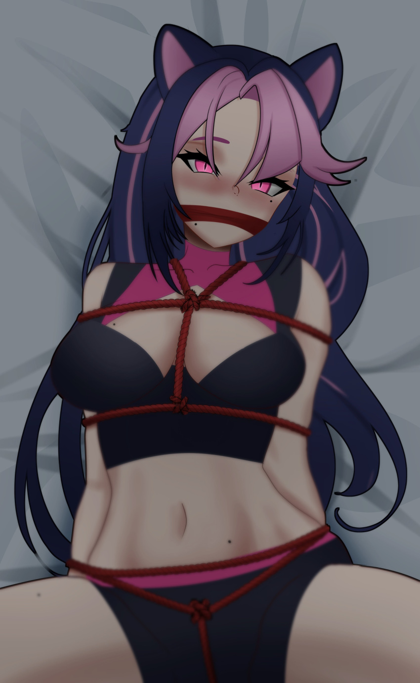 Tags: 1girlsanimal earsbedblue hairblushfemale onlyhighresimageboardlatam virtual youtuberlong hairlooking at viewerminiskirtmolen4hkzopen legspink eyespink hairroperope bondageRule34shura hiwatwo tone hairvirtual youtuber