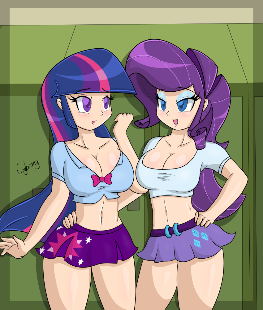 Tags: 2girlsblue eyesblushbowtiecleavagecogbronyequestria girlsfemale onlyhand on another's hiphand on hiphi reshuge breastsimageboardlockersminiskirtmulticolored hairmy little ponynavelpurple eyespurple hairrarity (eg)rarity (mlp)Rule34twilight sparkle (mlp)