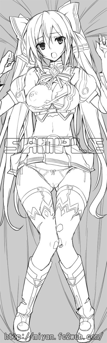Tags: 1girlsbreastscleavagedakimakura designhair ribbonimageboardlegwearmidriffmonochromenavelneptunia (series)nipplesnoireopen mouthpantiesRule34sample watermarktwintails