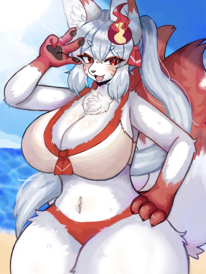 Tags: anthrobeachbikinifox girlfurryhuge breastshumanoidimageboardin pnjmarkingsoriginal characterposered eyesRule34sittingthick thighsvoluptuouswhite bodywhite hairwide hips