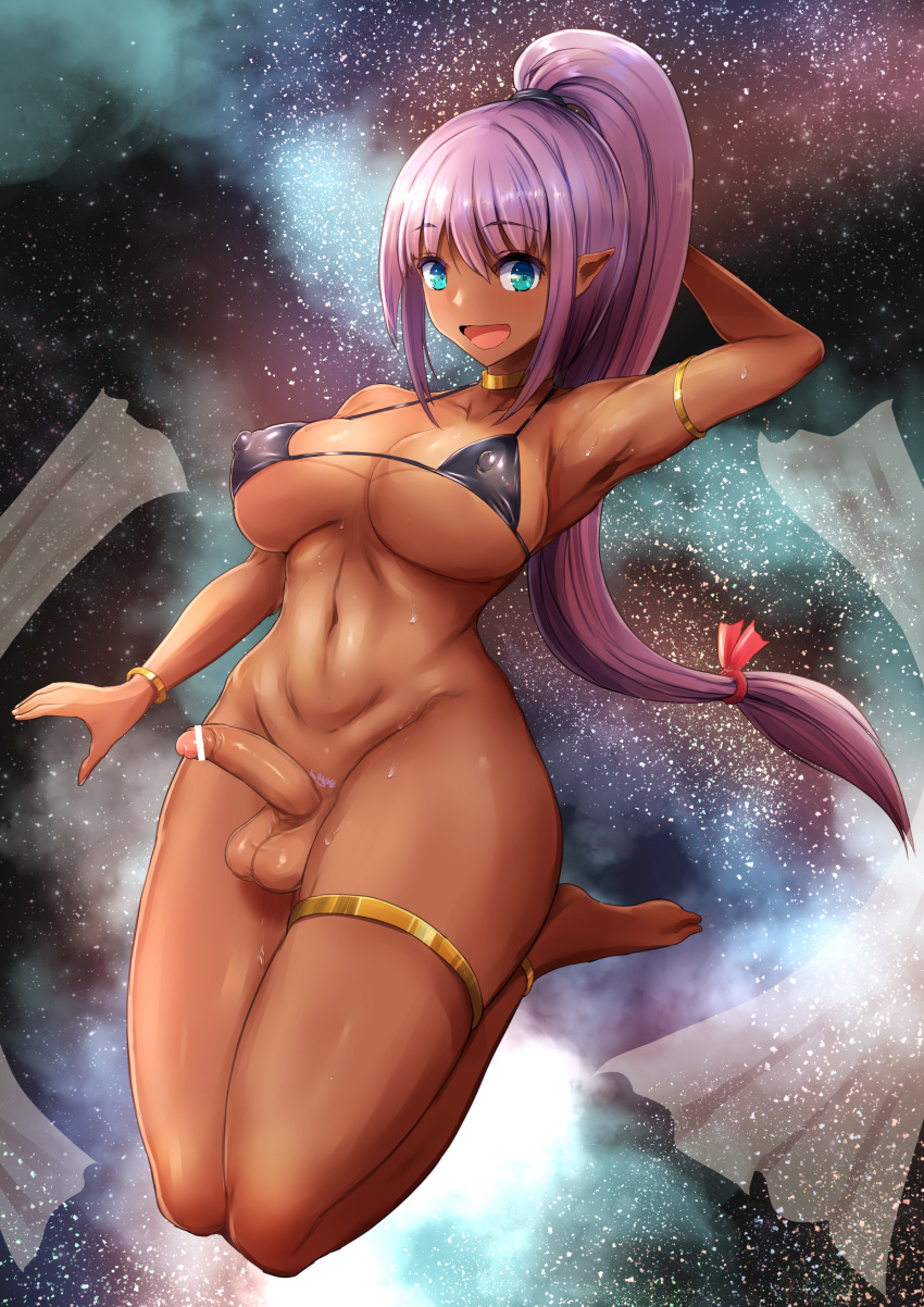 Tags: ballsblue eyesbottomlessbottomless futanaricensoreddark skindark-skinned futanariflaccidfutanarigeniegold jewelryimageboardnipples visible through clothingpenisRule34tagmeubanisuncensor requestviolet hair
