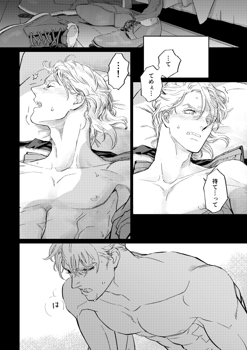 Tags: 2boysclosed eyesclothes on floorduogayimageboardimplied sexjojo's bizarre adventurelooking pleasuredmalemale/malenude maleopen mouthprosciuttorisotto neroRule34textvento aureoyaoi