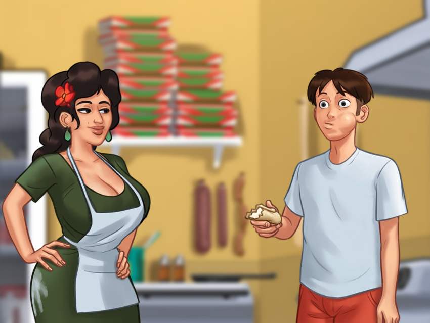 Tags: 1boy1girls2dbrown haircannolicleavageclothedclothingcurvycurvy bodycurvy femalecurvy figuredarkcookiedigital drawing (artwork)digital media (artwork)duoearringseatingfemaleflowerflower in hairhands on hipsholdingimageboardkitchenlatinalight skinlight-skinned femalelight-skinned malelong hairlooking at partnermain character (summertime saga)malemale/femalemaria (summertime saga)molemole under eyeopen mouthpizzeriaRule34shirtshortssmilesmilingstandingsummertime sagasurprisedsurprised expression