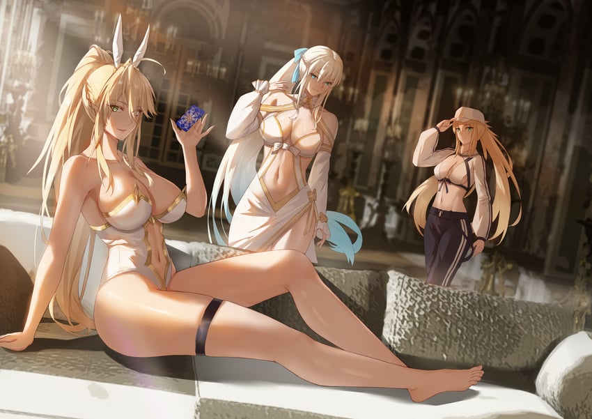 Tags: 3girls5 toesanimal earsartoria caster (fate)artoria caster (swimsuit) (fate)artoria pendragonartoria pendragon (caster)artoria pendragon (swimsuit ruler)artoria pendragon (swimsuit ruler) (second ascension) (fate)bare shouldersbarefootblack pantsblonde hairblushbreastscleavageclosed mouthcollarbonedetached sleevesdressdual personafake animal earsfate (series)fate/grand orderfeetfemalefemale onlyfreed turingfull bodygreen eyeshair ornamenthand uphatimageboardindoorslarge breastslegsleotardlong hairlong legslong sleevesmorgan le fay (fate)multiple girlsnail polishnavelpantsplayboy bunnyponytailrabbit earsRule34sittingsmilethigh strapthighstoenail polishtoenailstoesvery long hairwhite dresswhite hairwhite headwearwhite leotard