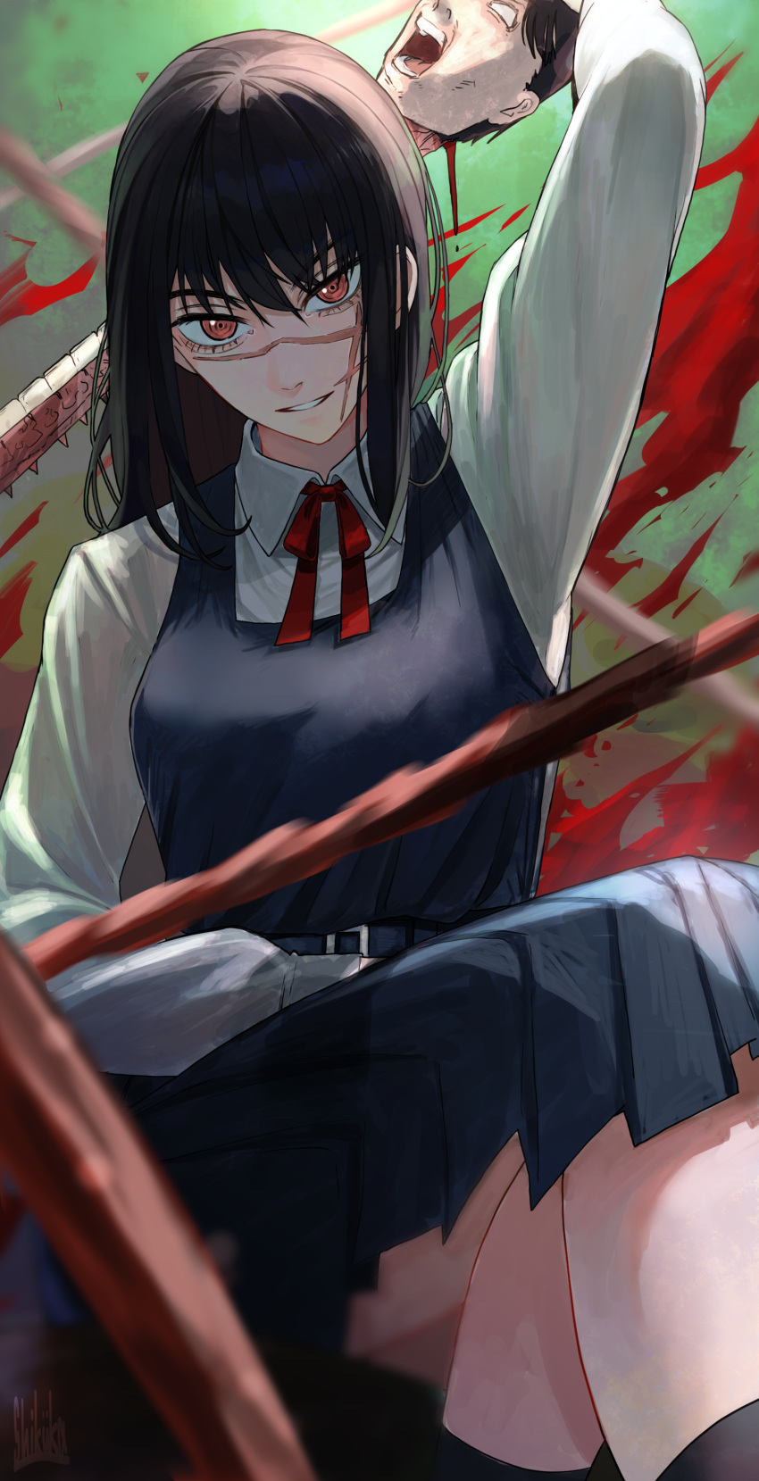 Tags: 1boyabsurdresbangsblack hairbloodchainsaw mancollared shirtcrossed legsdecapitationdressfemalehighresimageboardlong sleeveslooking at viewermedium hairmitaka asaneck ribbonorange eyesorganspinafore dressribbonringed eyesRule34scarscar on cheekscar on faceschool uniformshirtsittingsmilesnufftokishima sikukawar devil (chainsaw man)weaponwhite shirtyoru (chainsaw man)
