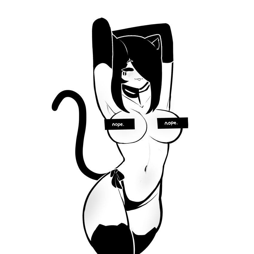 Tags: 1girls2023animal earsarmpitsarms above headarms upbikiniblack and whiteblack bikiniblack hairblushbreastscat earscat tailcatgirlcensoredchokerclosed eyescuteelbow glovesfacial markingsgloveshair over one eyeimageboardlong glovesnaveloriginalRule34side-tie bikinistandingtagmetailtekonathighhighsthighstonguetongue outtoplesswhite background