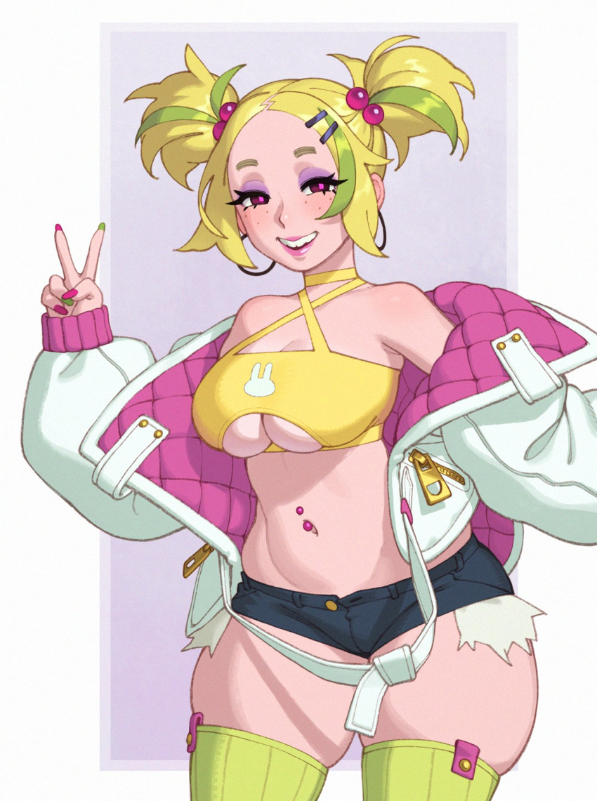 Tags: 1girlsblonde hairboob windowbooty shortsbratbuckteethcurvyeyelashesfreckleshigh thighsimageboardimplied prostitutionlooking at viewermakeuporiginaloriginal characterpainted nailspeace signpierced belly buttonpiercingsrizdrawsRule34saya (rizdraws)shortstackskimpysmallsolosolo femalesolo focusthick thighstwintailsunderboobunusual pupilsv