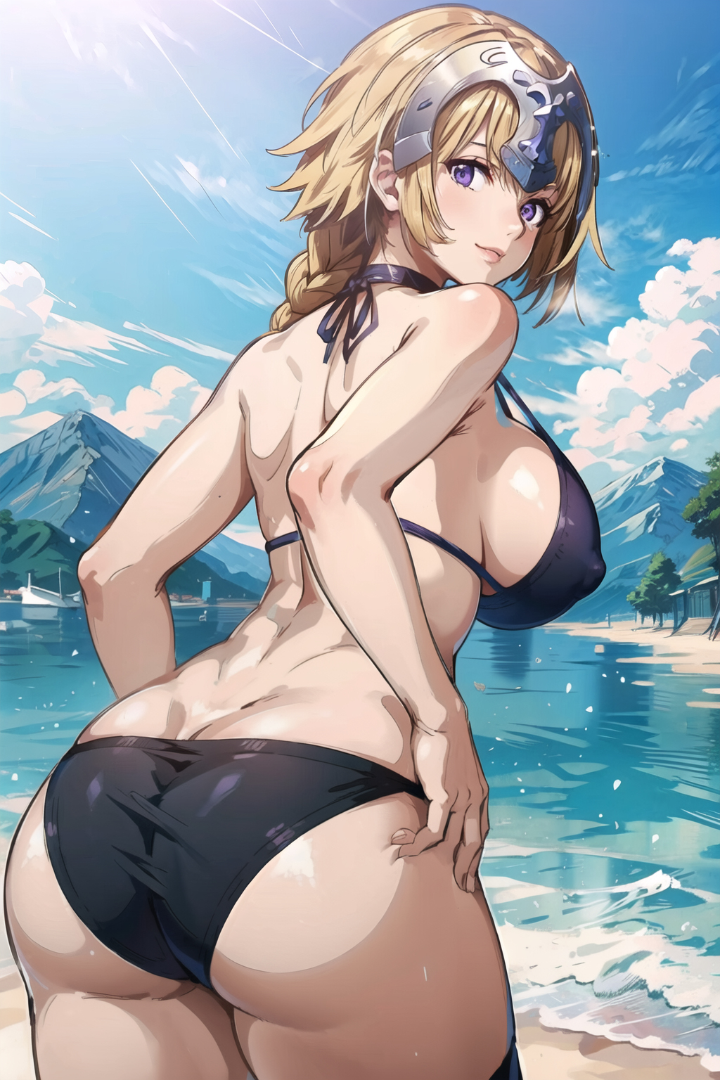 Tags: ai generatedassbikiniblonde hairbraidbreastsclouddayfate (series)fate/apocryphafemalefrom behindheadpieceimageboardjeanne d'arc (fate)jeanne d'arc (fate) (all)looking at viewerlooking backoceanoutdoorspurple eyesRule34sideboobskysolostable diffusionswimsuitwater