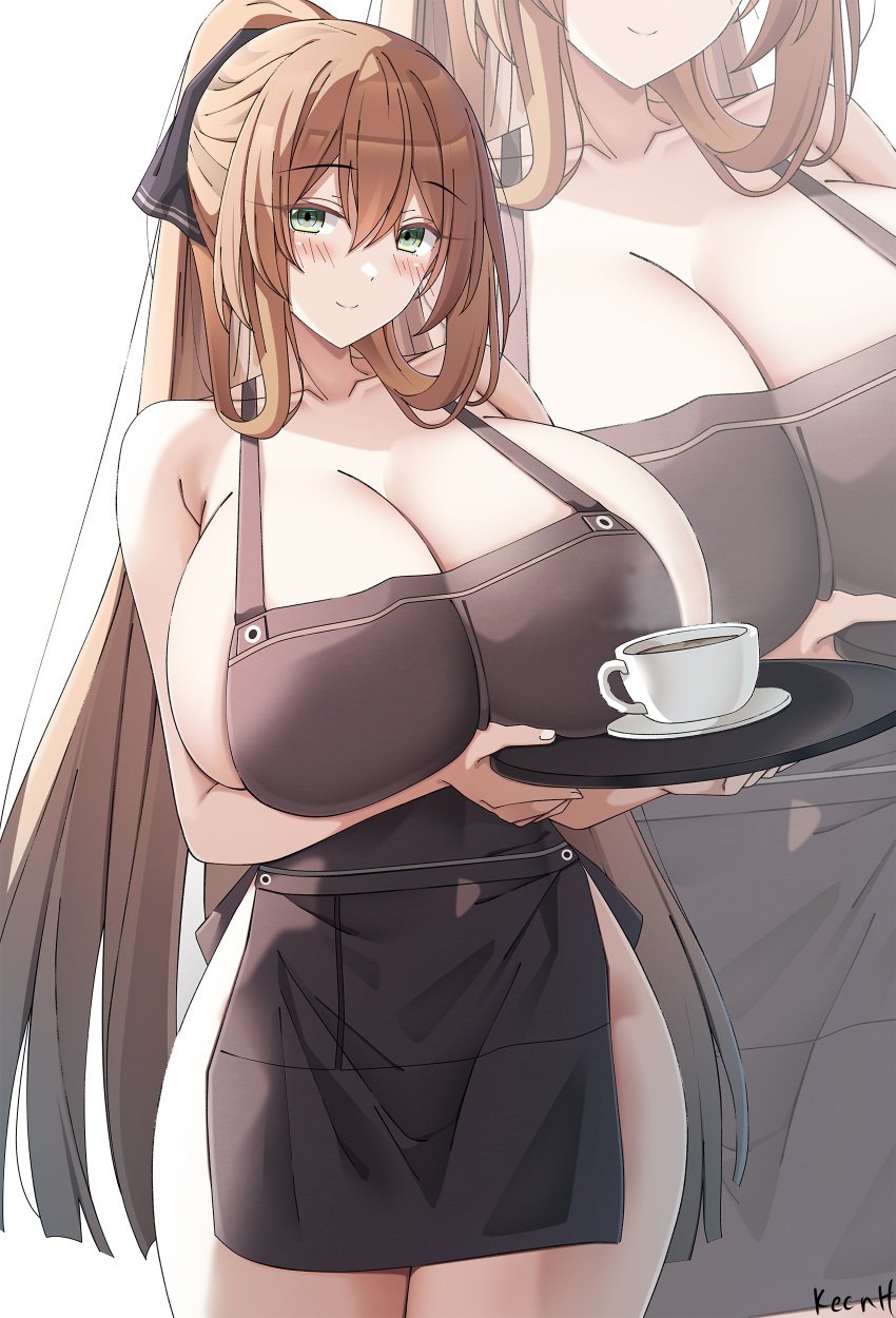 Tags: 1girlsabsurdresapronblushbreastsbrown hairclosed mouthcollarbonecupfemalegirls' frontlinegreen eyeshighresholdingholding trayhuge breastsimageboardkeenhlong hairlooking at viewernaked apronponytailRule34simple backgroundsmilesolospringfield (girls' frontline)teacuptrayvery long hairwhite backgroundwide hipszoom layer