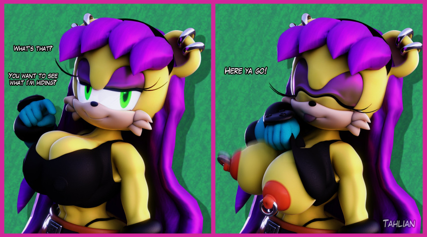Tags: 1girls3danthrobig breastsbreastsclothingdialogueear piercingearringsenglish texteyes closedfemalefemale focusfemale onlyfemale soloflashingflashing breastsglovesgreen eyeshalf-closed eyeshuge breastsimageboardlarge breastslong hairlooking at viewermina mongoosemongoosenipple piercingnipplespiercingpurple hairRule34shirtshirt liftsmilesolosolo femalesonic (series)sonic the hedgehog (series)source filmmakerspeech bubbletahliansfmtalking to viewertank toptexttonguetoungue out