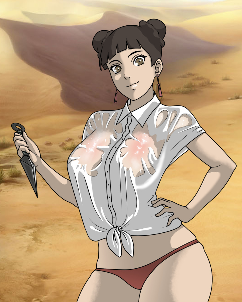 Tags: 1girlsbare legsbig breastsblunt bangsboruto: naruto next generationsbottomlessbreastsbrown eyesbrown hairdessertdouble bunearringsg-stringgolden oukenhigh resolutionholding objectholding weaponhuge breastsimageboardjewelrykunaikunoichilarge breastslight skinlight-skinned femalelooking at viewermaturemature femalemidriffmilfnarutonaruto (series)ninjano braoutdoorspale skinpale-skinned femalepantiespinupred pantiesRule34see-throughsee-through clothingsee-through shirtsmiletententhighsthongtied shirttwin bunsvoluptuousweaponwetwet bodywet shirtwet skinwhite shirtwide hips