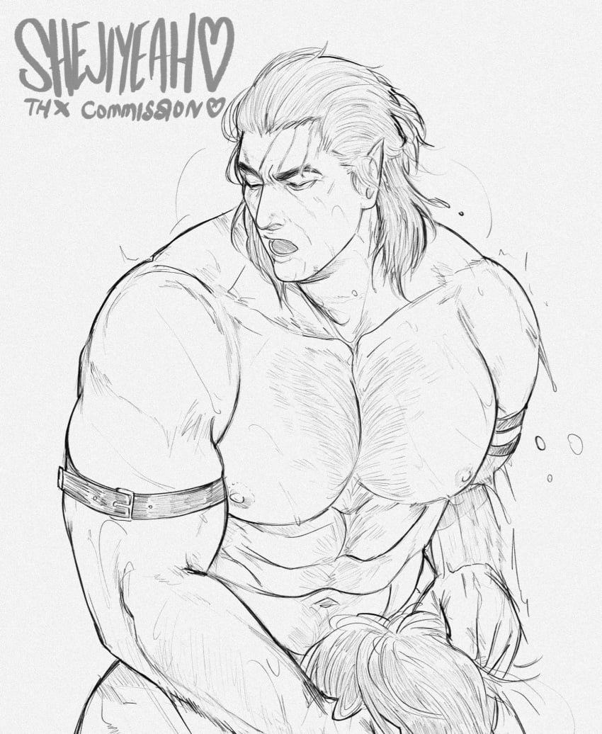 Tags: 1boyarm hairbaldur's gatebaldur's gate 3barabraidbreathchest hairclosed eyescommissioncompletely nudedark skindark-skinned maledeepthroatdungeons and dragonselffellatiogreyscalehairyhalsinhighresimageboardlarge pectoralsmale focusmature malemedium hairmonochromemuscularmuscular malenudeoralpectoralspointy earsRule34shejiyeahsolo focussweattattoothick eyebrowsturning headyaoi