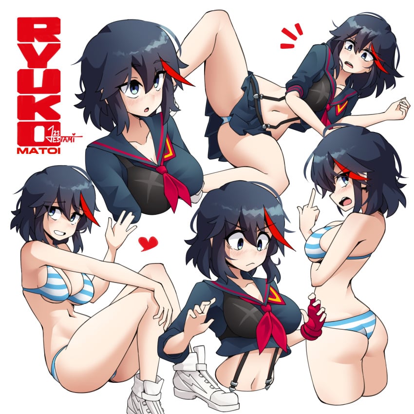 Tags: angryassblack hairblue eyesblushbracleavagefemalefemale onlyfrownhi resimageboardjestamikill la killmatoi ryuukomedium hairmiddle fingernavelpantiesred strand of hairRule34senketsushy smileskirtspread legsstriped brastriped pantiessurprisedsuspendersunderwearwavingwhite background