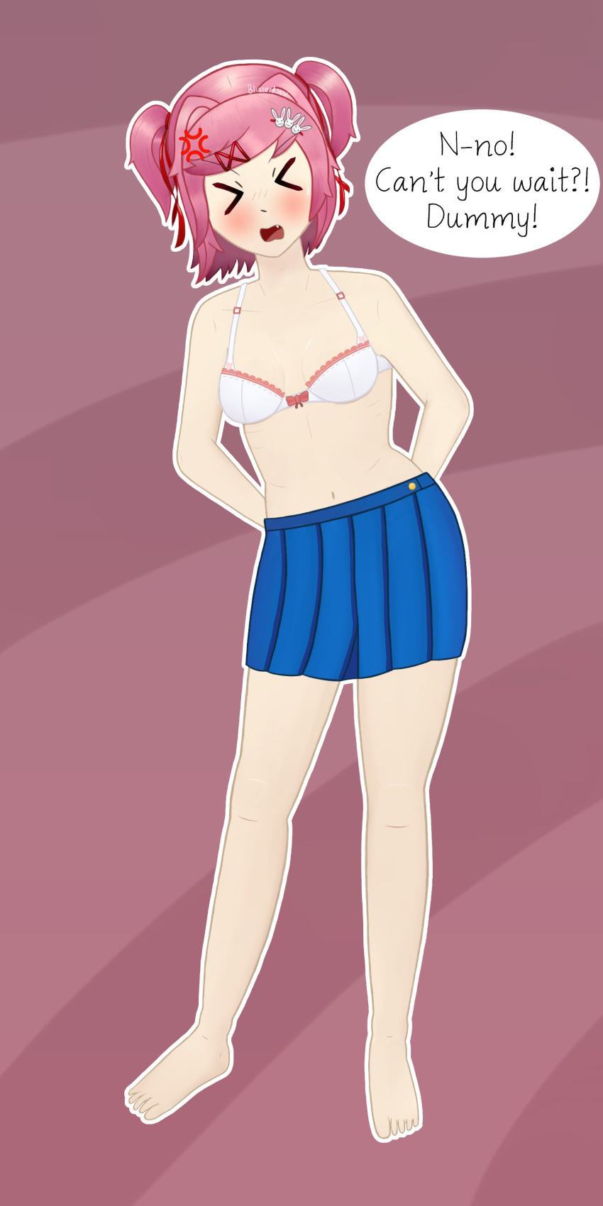 Tags: arms behind backblizznsfwblue skirtbradoki doki literature clubimageboardnatsuki (doki doki literature club)oerba yun fangopen mouthpink eyespink hairRule34skirttextext bubbleweird eyeswhite bra