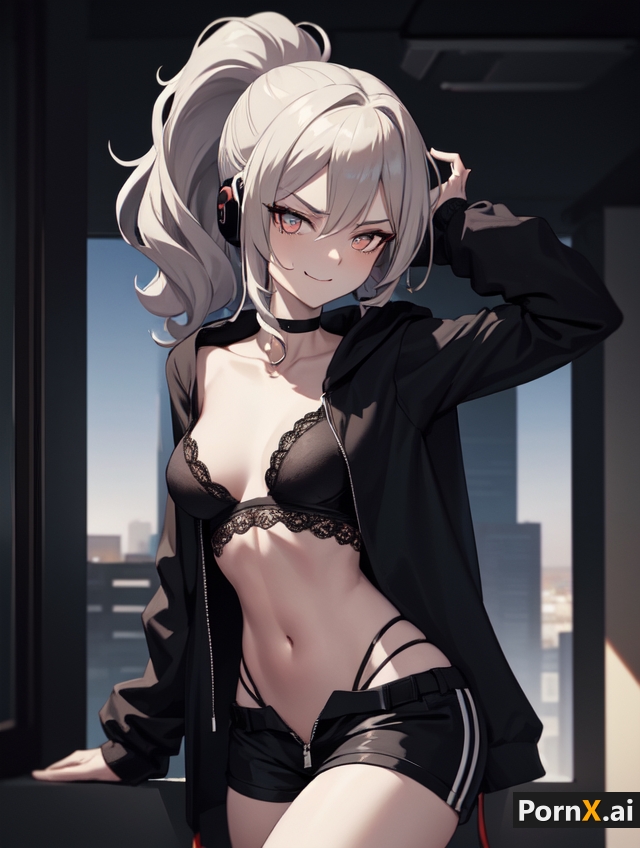 Tags: 1girlsai generatedblack clothingbrachokercollarbonefemalefemale onlygrey hairheadphoneshonkai (series)honkai: star railhoodieimageboardjacketlacelace-trimmed bramedium breastsmedium hairmulticolored eyesnavelponytailpornx.airibsRule34shortssilver wolf (honkai: star rail)skindentationsmilesmilingsolothongthong strapsundressingunzipped