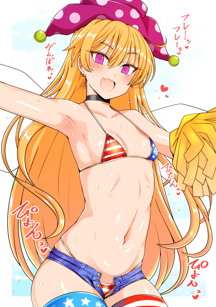 Tags: 1girlsamerican flagamerican flag bikiniamerican flag legweararmpitsbelly buttonbikiniblonde hairblushbreastscheerleaderchokerclownpiecefairyfairy wingsimageboardjean shortsjeansjester capjester hatlong hairnavelopen mouthpink eyespom pomsroki (hirokix)Rule34shortssmall breastssolosweatthighhighsthighstouhouwingsyellow hair