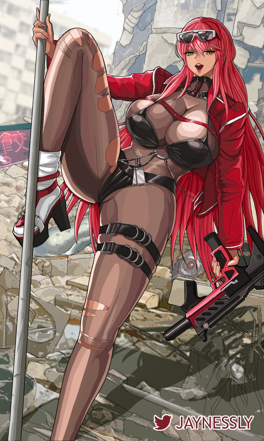 Tags: big breastsbikinibikini over clothesbodystockingeyeweareyewear on headgoddess of victory: nikkeimageboardpolered hairred jacketRule34sunglassestagmetagme (artist)torn clothesvolume (nikke)weapon