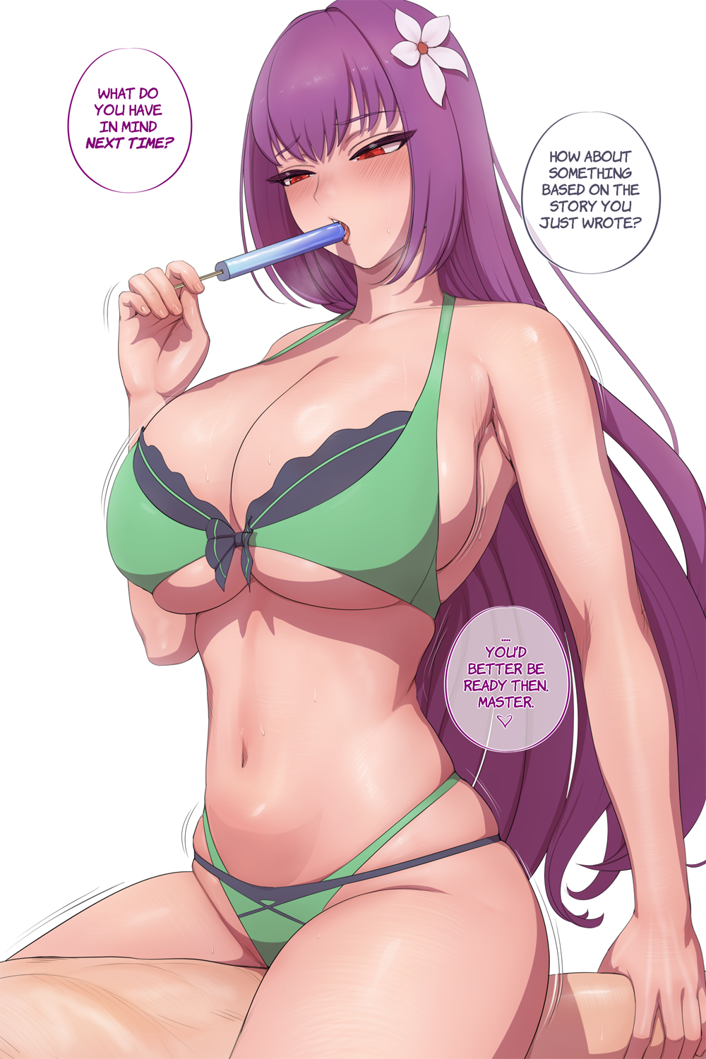 Tags: 1boybad sourceblushbreastscleavagecollarbonecowgirl positionenglish textfate (series)fate/grand orderfemalefoodfujimaru ritsuka (male)hair ornamenthighresholdingholding foodholding popsicleimageboardimplied sexlarge breastslong hairlvl (sentrythe2310)lyingnavelon backopen mouthpopsiclepurple hairRule34scathach (fate)scathach skadi (fate)simple backgroundsolo focusunderboobwhite background
