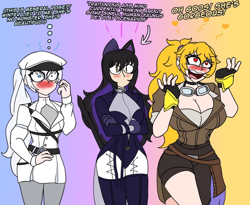Tags: 3girlsbare thighsblack eyesblake belladonnablushbootsbreastsbrown hairburplenurplessdefeatedenglish textfemalefemale onlyfemsubfutadomfutanariharemhatheavy blushhuge breastsimageboardlarge breastslong hairmedium breastsmulticolored hairmultiple girlsred hairRule34rwbytextthighhighsthighsvery long hairweiss schneeyang xiao long