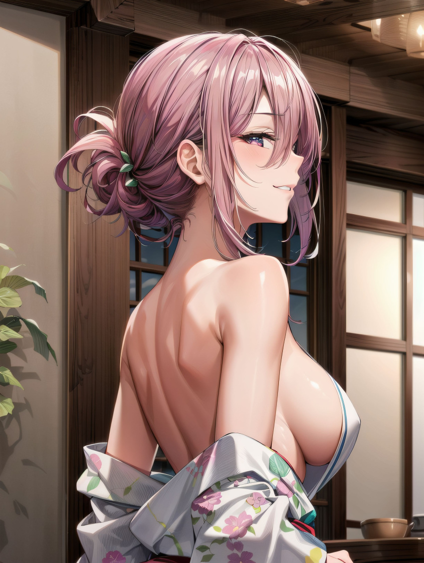 Tags: 1girlsai generatedbackexposed backhi reshighresimageboardkimonolooking at viewermedium breastsoriginalpink hairponytailRule34seductiveseductive lookshouldersside viewsideboobsmilesolosolo femaleundressing