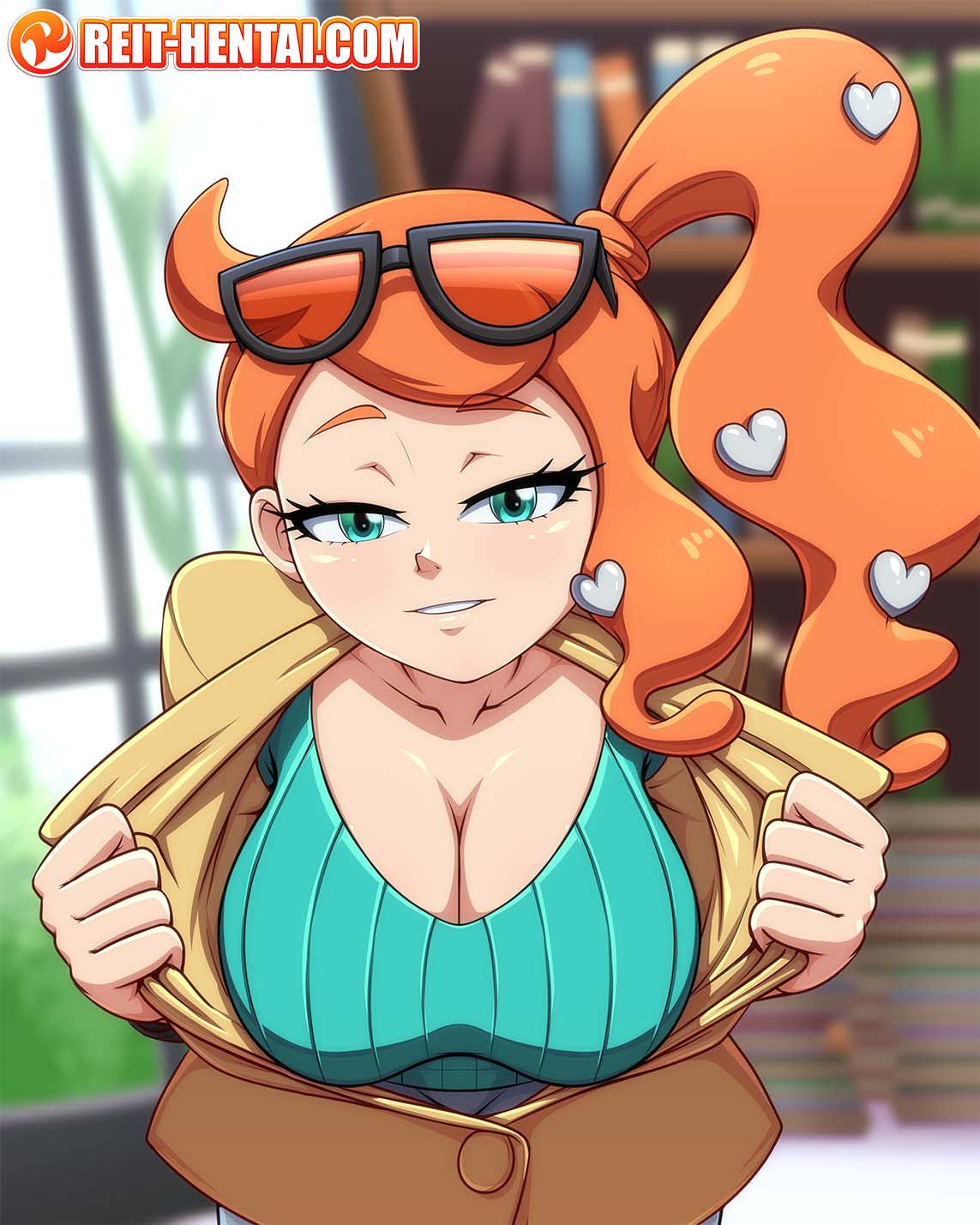 Tags: 1girls2020big breastscleavageclothedfemaleglassesglasses on headgreen eyeshair ornamenthair ornamentshalf-closed eyesimageboardjacketlooking at vieweropen coatorange hairpokemonpokemon ssponytailpovpresenting cleavagereitRule34smilingsonia (pokemon)sunglasses on headturquoise eyesweb address
