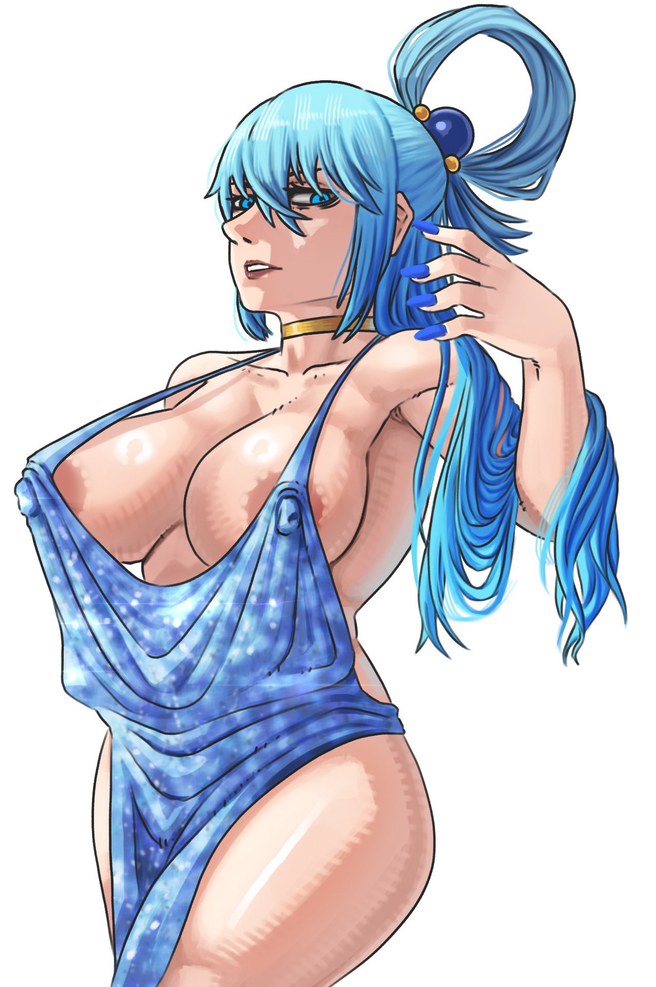 Tags: aqua (konosuba)areolaareolaebig breastsblue dressblue eyesblue hairchokerdressfingernailsimageboardincinerated artkono subarashii sekai ni shukufuku wo!long hairlooking at viewerloose clothesRule34