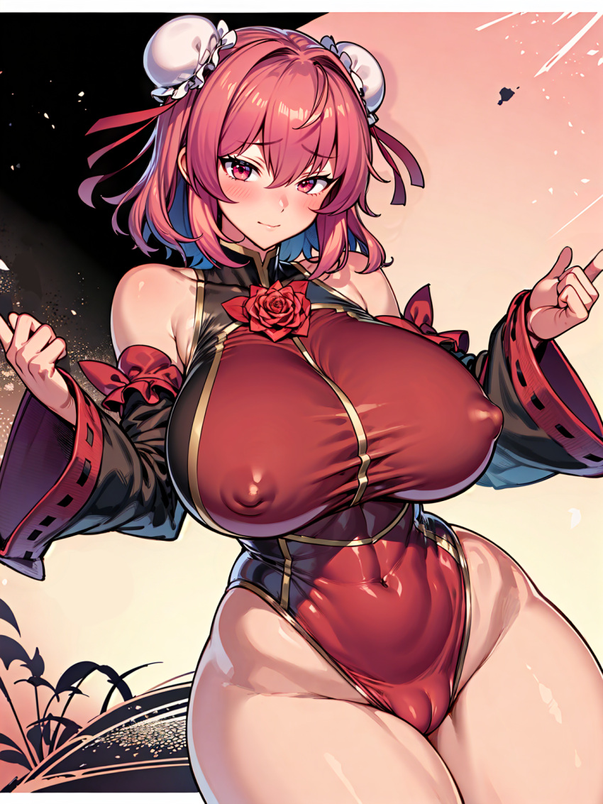 Tags: 1girls2dabsai generatedbare shouldersbellybelly buttonbig breastsblushbreastsbunscameltoecurvaceousdetached sleevesfemalefemale focushipshourglass figureimageboardkasen ibarakileotardlooking at viewernipple bulgepink eyespink hairRule34short hairsmakielsolosourcestandingthick hipsthick thighsthighstouhoutummytwin buns