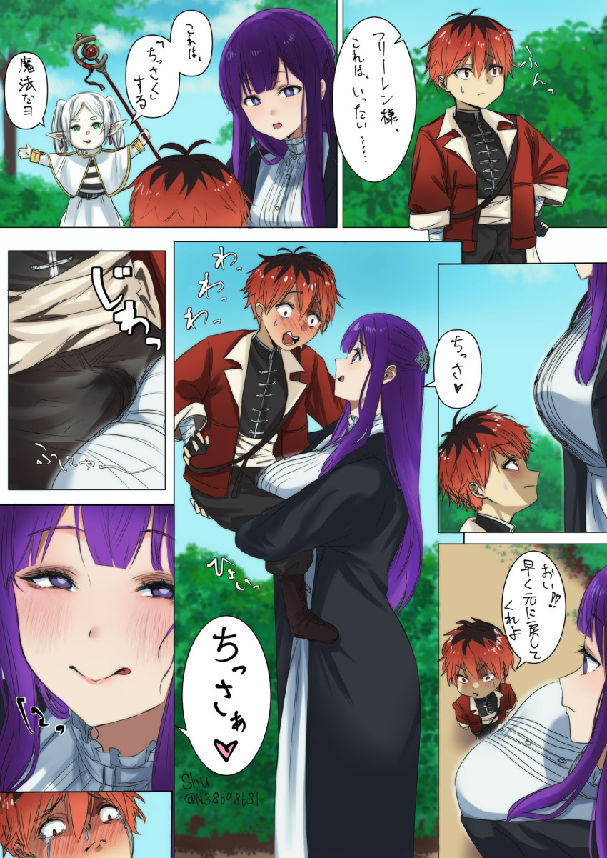 Tags: 1boy2girlsboyerectionfern (sousou no frieren)frierenhorny femaleimageboardimminent sexlarge breastslicking lipslong hairolder femalepurple hairred hairRule34size differencesousou no frierenstark (sousou no frieren)