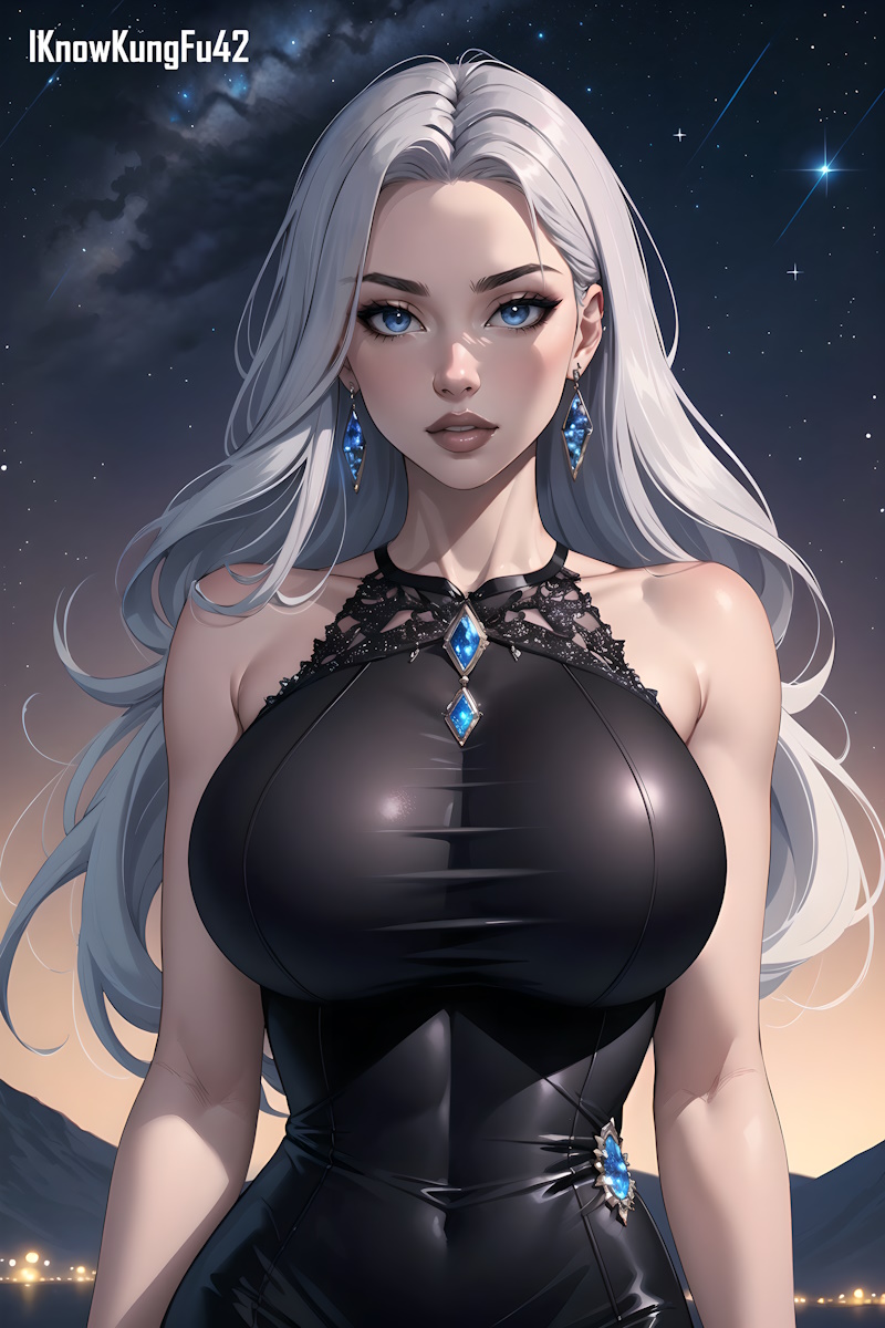 Tags: 1girlsai generatedbare shouldersbig breastsbig lipsblack clothingblack dressblue eyesbreastsbustyclothedclothingdetailed backgrounddressearringseyelashesfemalefemale humanfemale onlyhourglass figurehumaniknowkungfu42imageboardjewelrylarge breastslight skinlight-skinned femalelipslong hairlooking at viewernightparted lipsRule34silver hairskin tightskysolothick lipswhite hair