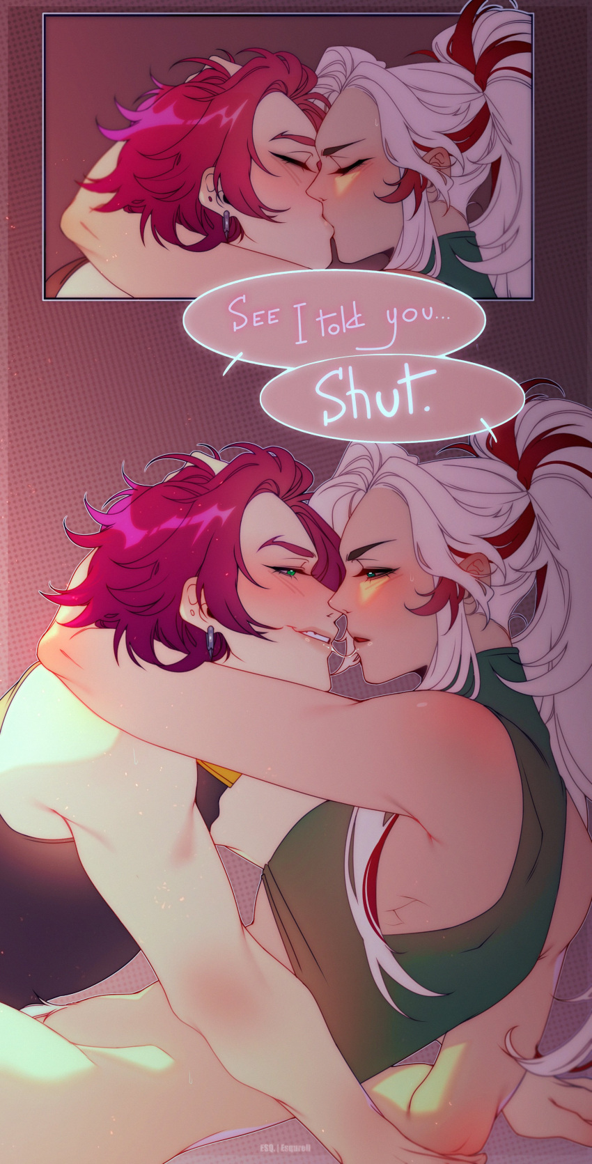 Tags: 2boysarm around neckblushbottomless maleclosed eyesdialogue bubbleearringsgayhalf-dressedhand in hairheartsteel kaynheartsteel seriesheartsteel yoneimageboardimminent seximplied sexkaynkissinglaying on backlaying on bedleague of legendsleaning forwardpiercingpink hairponytailpubic hairred hairRule34salivasaliva stringtwo tone hairwhite hairyaoiyone