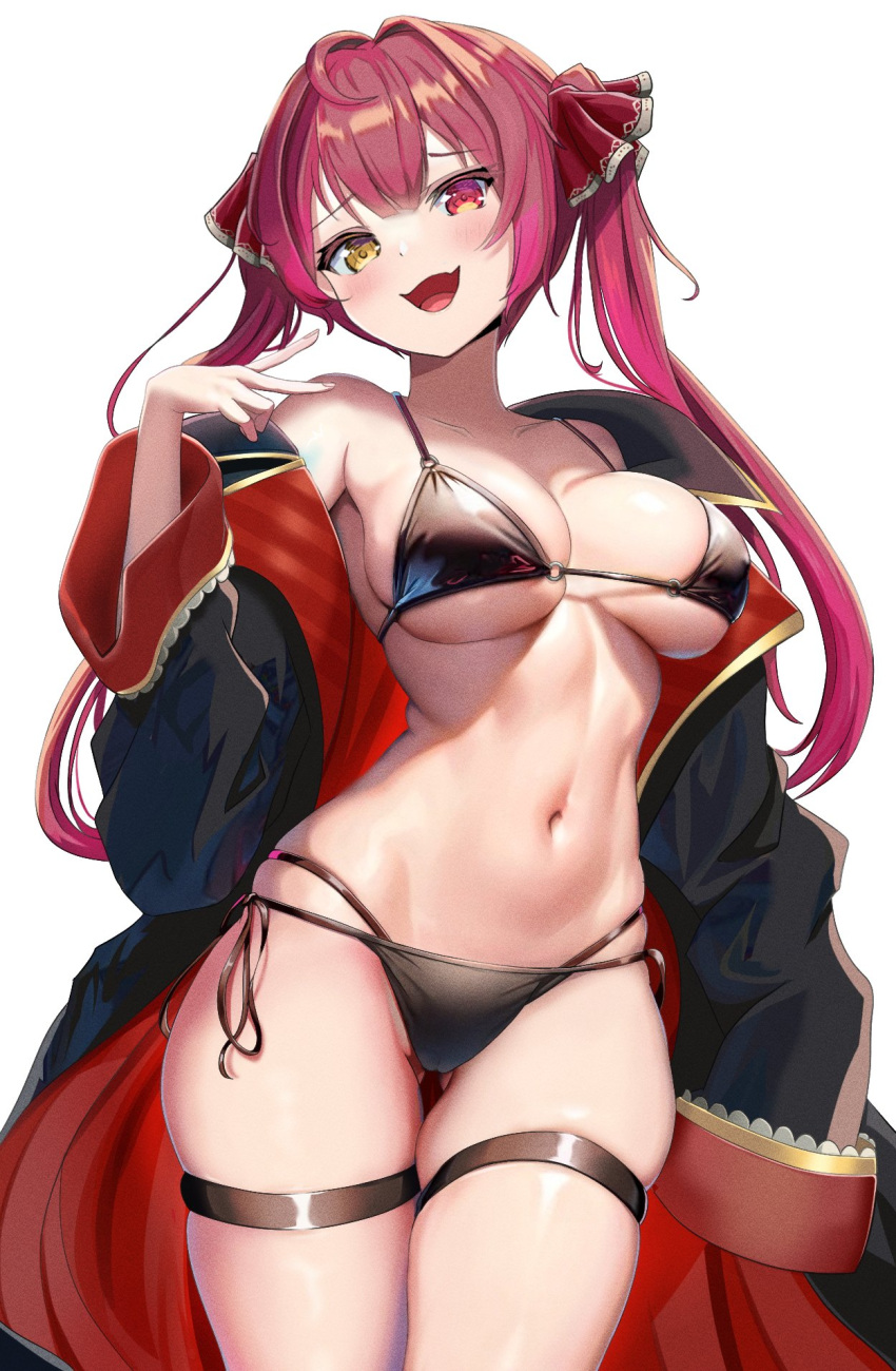 Tags: 1girlsbare shouldersblack bikiniblack coatbreastscleavagehair ribbonheterochromiahololivehoushou marineimageboardlarge breastslong hairnavalnekonosukeopen coatred eyesred hairred ribbonRule34side-tie bikiniskin fangsmilesolothighstwintailsvirtual youtuberwhite backgroundyellow eyes