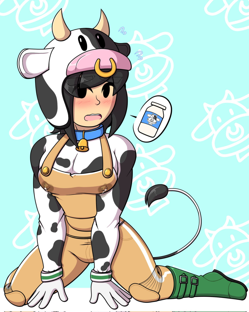Tags: 1boyblack eyesblack hairblushcow printcow tailcowbellhelmetimageboardlactation through clotheslarge pectoralsmalemale lactationmale onlymario kartmiimii brawlernipple bulgeon hands and kneesracing suitRule34solosuper smash bros.xenondotexe (artist)