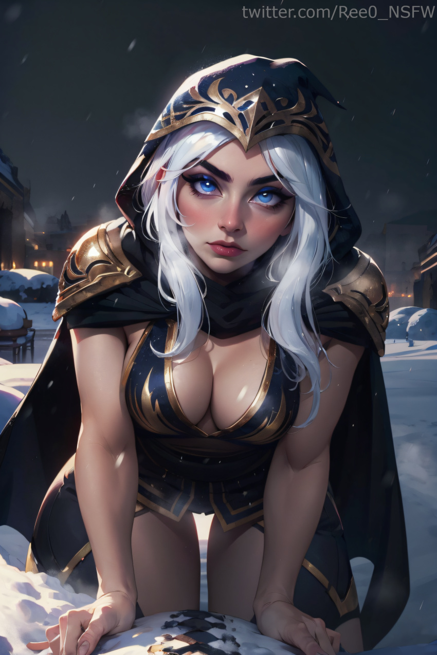 Tags: absurd resabsurdresai generatedall foursarmorashe (league of legends)blue eyesblushbreastsbreathcapecleavagecloakfemalehi reshighreshoodhood uphooded cloakimageboardlarge breastsleague of legendsleague of legends: wild riftlipslong hairlooking at viewermedium breastsnightoutdoorsparted lipsree0riot gamesRule34shoulder armorsnowsnowingsolowhite hairwinter