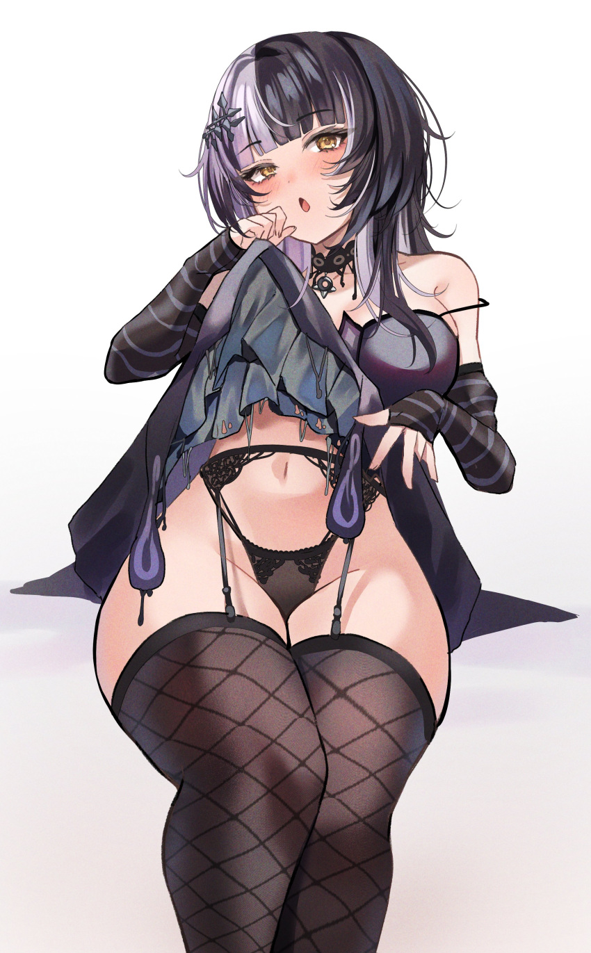 Tags: absurdresblack hairblushbreastsclothes liftdressdress liftfemalegarter beltharuka ayanehighreshololivehololive englishhololive english -advent-imageboardlarge breastslong hairlooking at viewermulticolored hairnavelpantiespurple hairRule34shiori novellasolosplit-color hairthick thighsthighhighsthighstwo tone hairunderwearvirtual youtuberwhite backgroundwide hipsyellow eyes