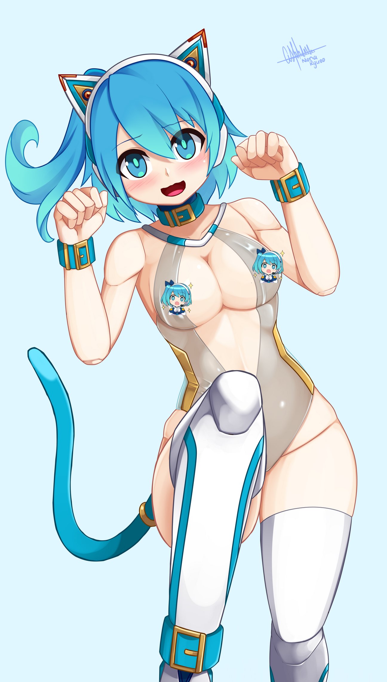 Tags: 1girlsblue haircat earscensoredfemaleimageboardlegwearmega manmega man x divenanaryuoonecklacenekoreploidrico (mega man)Rule34short hairsolotagmetail