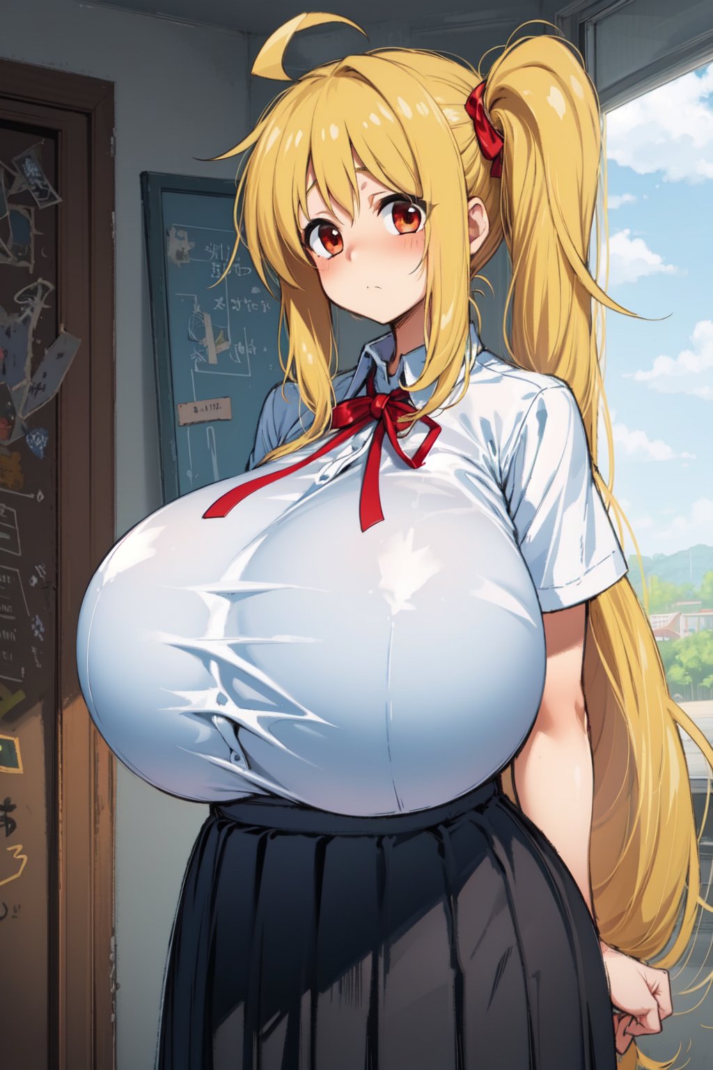 Tags: 1girlsahogeai generatedalternate breast sizeblack skirtblackboardblonde hairblushblushing at viewerbocchi the rock!breastsclosed eyesdoorfemaleflusteredhuge breastsijichi nijikaimageboardlarge breastslong hairlooking at viewerneck ribbonred eyesred ribbonribbonRule34school uniformschoolgirlside ponytailskirtsolostandingwhite shirtwindow