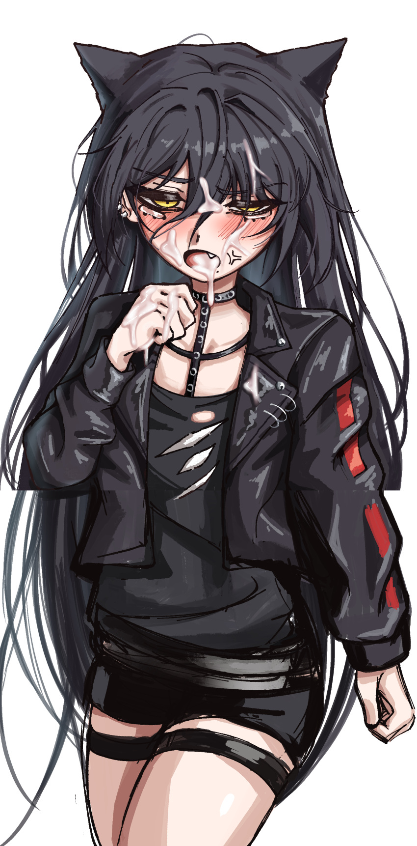 Tags: absurdresanger veinanimal earsarknightsblack chokerblack hairblack jacketblack shirtblack shortsblushcat earschokerclenched handcowboy shotcumcum in mouthcum on haircum on handsdagda (arknights)earringsextra earsfacialfemalehalf-closed eyeshand uphighresimageboardjacketjewelrylong hairlong sleevesoerba yun fangopen clothesopen jacketopen mouthpetra (jgc845601)Rule34shirtshortssimple backgroundsolovery long hairwhite backgroundyellow eyes