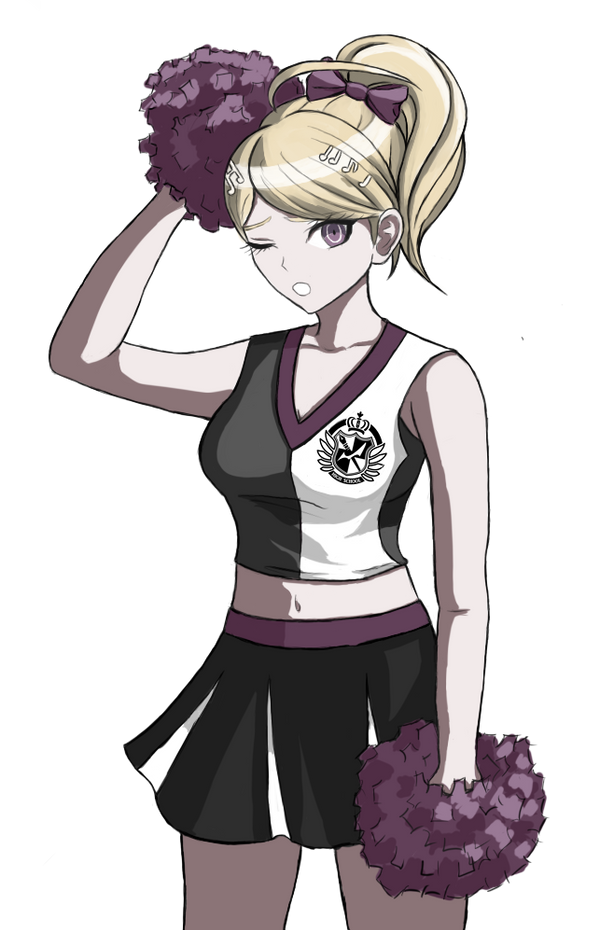 Tags: 1girlsaccurate art styleakamatsu kaedeblonde hairbreastscheerleadercheerleader uniformchelleremedydanganronpadanganronpa v3hairbowimageboardlooking at viewermedium breastsmidriffmusical note hair ornamentnavelpom pom (cheerleading)ponytailpurple eyesRule34sprite edit