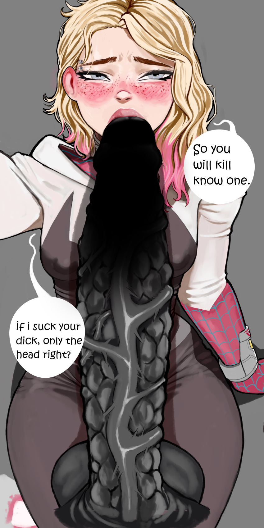 Tags: 1boy1girlsblack skinblack-skinned maleblonde hairbodysuitfemalefrecklesgwen stacyhuge cockhumanhuman on humanoidhumanoidimageboardinterspecieslight skinlight-skinned femalemalemarvelmedium breastsmoisty boomonster cockoralRule34sexsittingspider-gwenspider-man (series)spider-man: across the spider-versestraightvenom (marvel)