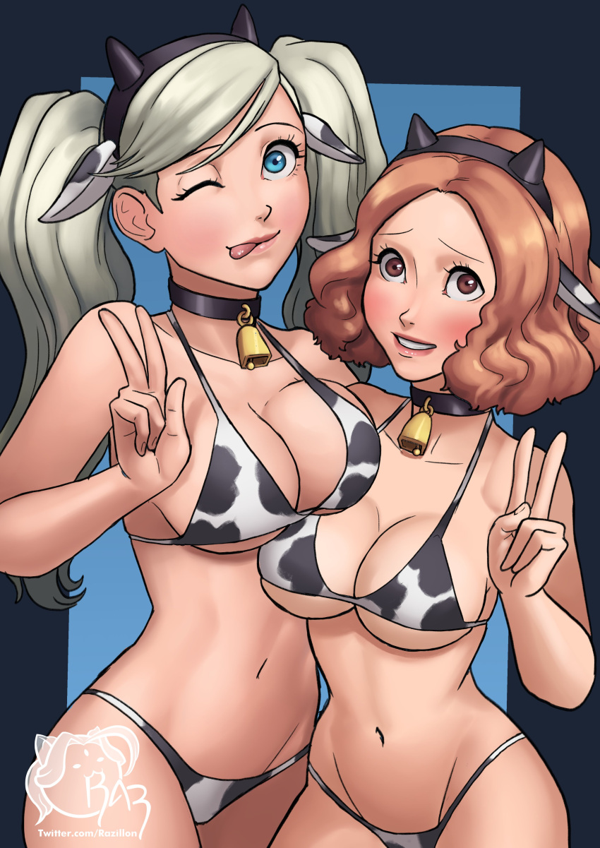 Tags: 2girlsann takamakiblonde hairblushbrown haircow hornscow printcow print bikinifemalefemale focusfemale onlyharu okumuraimageboardpersonapersona 5razillonRule34short hair