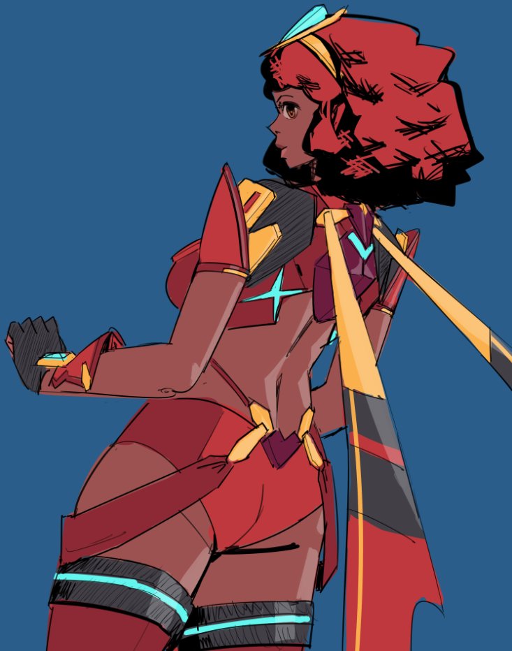 Tags: afroalternate skin colorassdark skindark-skinned femaleebonizationebonyfingerless glovesfrom behindgluteal foldhair ornamentimageboardpyrarace swapred shortsRule34shortsthighhighstiaravery dark skinwide hipsxenoblade (series)xenoblade chronicles 2