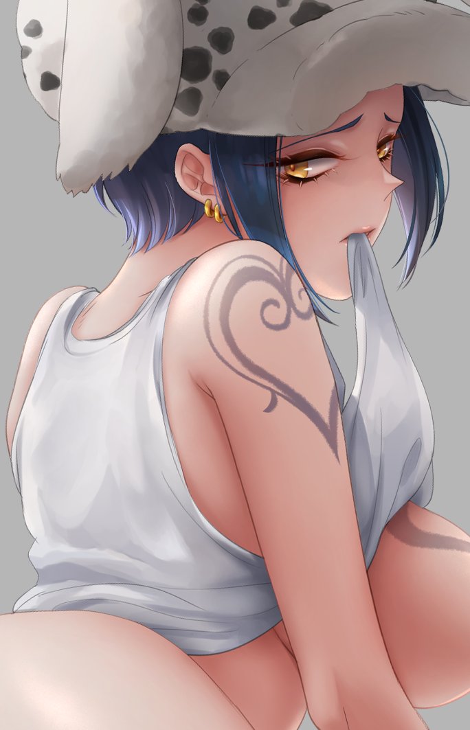 Tags: 1girlsassblack hairblushbottomlessbreast tattoobreastsclothes liftearringsfemalegenderswap (mtf)hatimageboardjewelrykiznalarge breastslifted by selfmouth holdone piecerule 63Rule34shirt liftshort hairshoulder tattootank toptattoothighstrafalgar lawwhite tank topyellow eyes