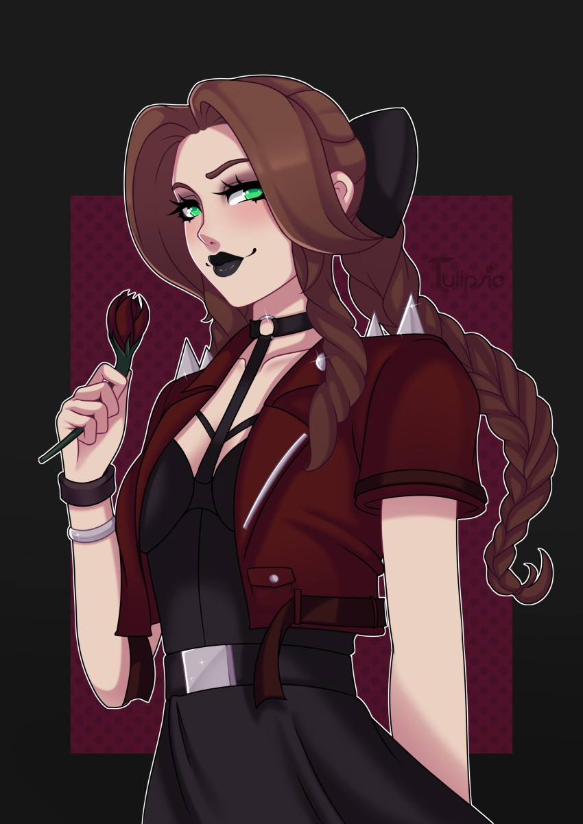Tags: 1girlsaerith gainsboroughblack dressblack lipstickbreastsbrown hairchokercropped jacketdressfinal fantasyfinal fantasy viiflowergothgoth girlgreen eyeshairbowholding flowerimageboardjacketlipsticklooking at viewermedium breastsred jacketRule34shoulder spikesspiked jacketspikestulipsietwin drills