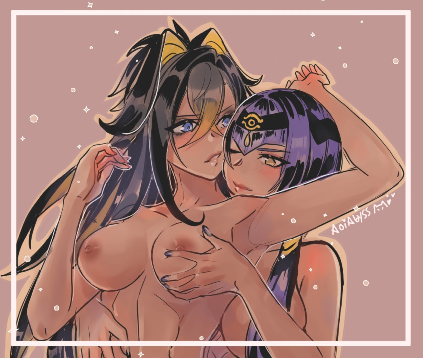 Tags: 2girlsaoiabyssbig breastsblack hairbreast grabbreastscandace (genshin impact)dark skindark-skinned femaledehya (genshin impact)femalefemale onlyfondlingfrom behindfrom behind positiongenshin impactimageboardlong hairnipplesnudepurple hairRule34yuri