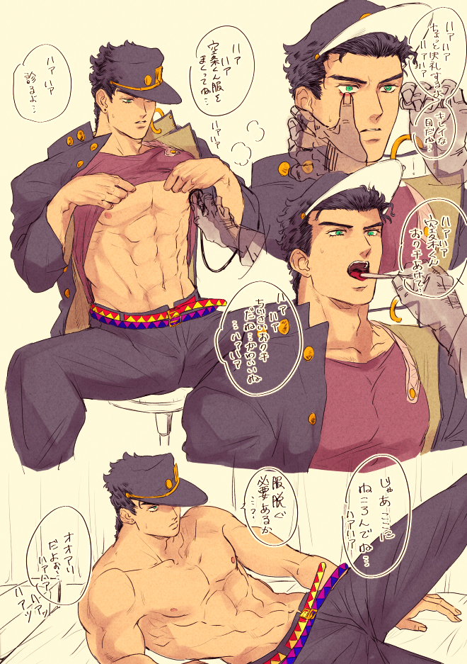 Tags: 1boydisembodied handsexposed chestimageboardjojo's bizarre adventurejotaro kujomalemale nipplesmale onlymuscular maleopen mouthRule34shirtlessshirtless malesolostardust crusaderstext